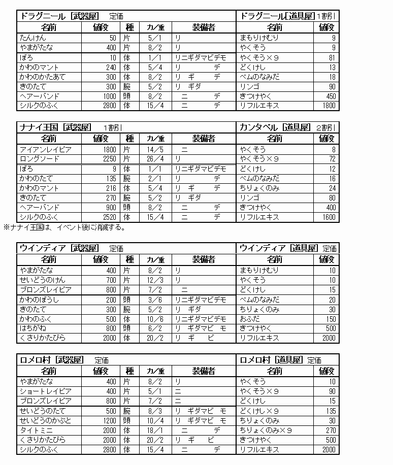 ※種類の欄に「両」とある物は両手用で、盾を装備できません。