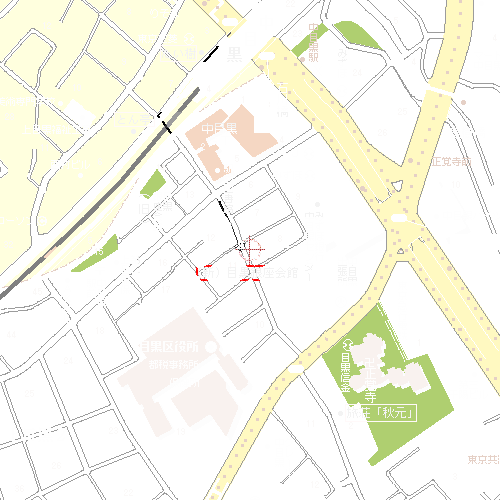 会場周辺の地図は以下の通りです。黒矢印は「中目黒駅から会場入りする場合のルート」です。